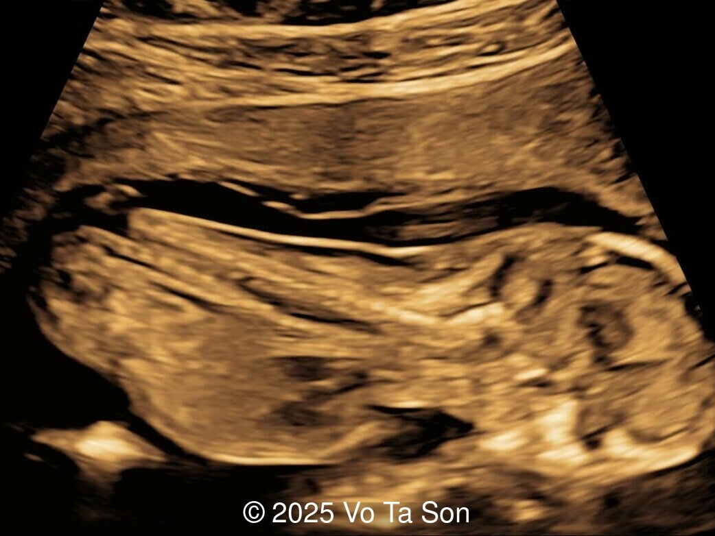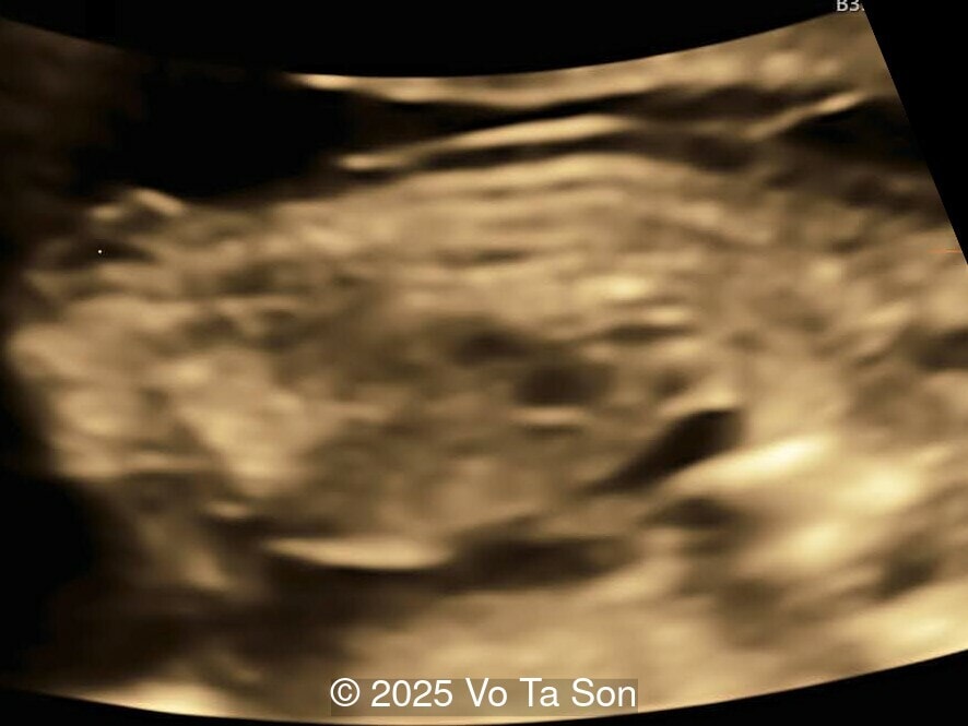 If a triploid fetus survives to the second trimester, structural anomalies can be detected by ultrasound and occur in approximately 44-49% of fetuses [4,11]. These include anomalies of the extremities (syndactyly of the third and fourth fingers, clubfeet), central nervous system (holoprosencephaly, Dandy-Walker malformation, agenesis of the corpus callosum, neural tube defects), face (micrognathia, microphthalmia), as well as omphalocele, cardiac anomalies, and renal anomalies [6,7]. The most common findings are syndacyly, occurring in approximately 70% of cases [11], and central nervous system anomalies, which are found in approximately 40% of cases [11], with myelomeningocele found in 9-13% of fetuses with triploidy [8,11-12]. Cardiac defects occur in 13%, of which 9% are ventricular septal defect [11]. If these defects are seen in a growth-restricted fetus, triploidy should be considered in the differential diagnosis and amniocentesis offered, especially if the placenta is enlarged and contains cysts. Features of a partial hydatidiform mole occurs in 24-33% of cases with triploidy [4,11]. Additionally, theca lutein cysts may develop in the maternal ovaries due to high levels of human chorionic gonadotropin [6,7].